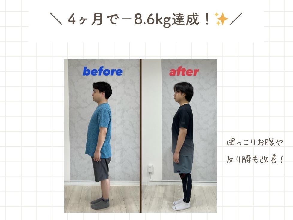 ぽっこりお腹の減少に伴い、反り腰も改善しているのがわかります!