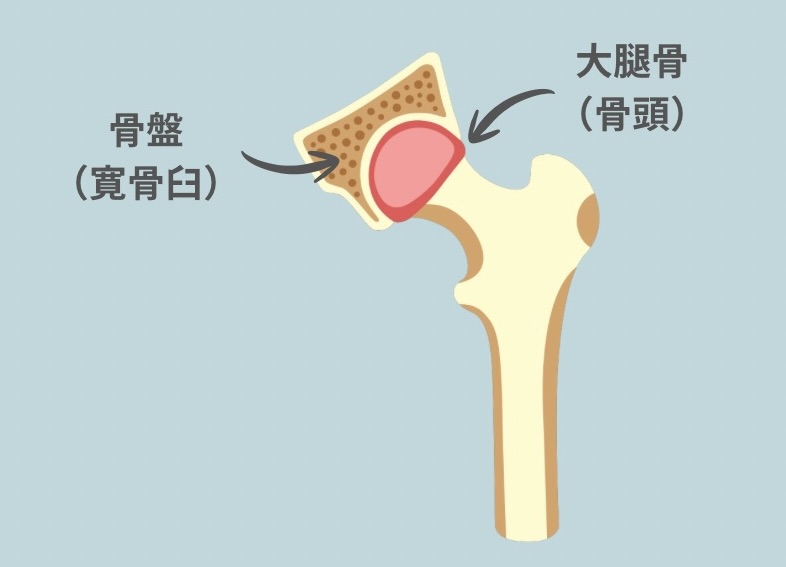 股関節は、骨盤のカップに大腿骨のボールがはまり込むような構造で肩と同じく「球関節」といわれます。この構造により360°に渡る大きな動作を有しています。