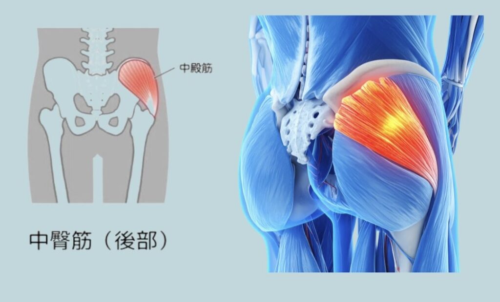 その中でも特に重要なのは中臀筋の「後部線維」です。